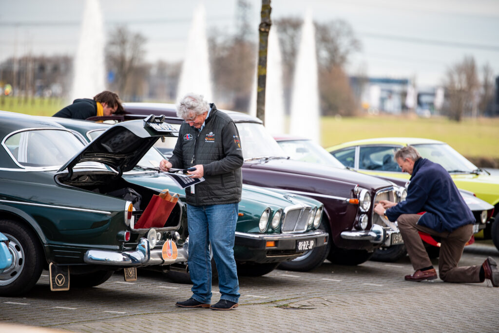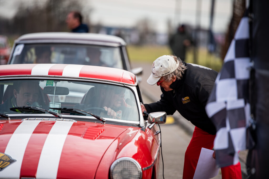 Om kwart voor 9 scherp werd de eerste equipe gestart door onze vertrouwde speaker Bert van der Dool. Sinds 2022 wordt de IJssellandrally wel ‘de Nederlandse Rally of the Tests’ genoemd en dat is niet voor niets! Vanaf het moment dat de equipes het terrein van Van der Valk afreden begonnen de ‘spelletjes’. Geen kaartleesspelletjes, daar houden we niet van bij deze rally, wel nauwkeurig de systemen volgen, proeven goed rijden, regularities aanvoelen en je uitleven op de 5 proeven die door de dag heen op 3 afgesloten circuits werden afgewerkt. Kortom, rijder en navigator komen vol aan hun trekken, individueel, maar vooral als team. Daarbij geldt dat de sportklasse natuurlijk wat meer uitdagingen krijgt dan de clubklasse.
