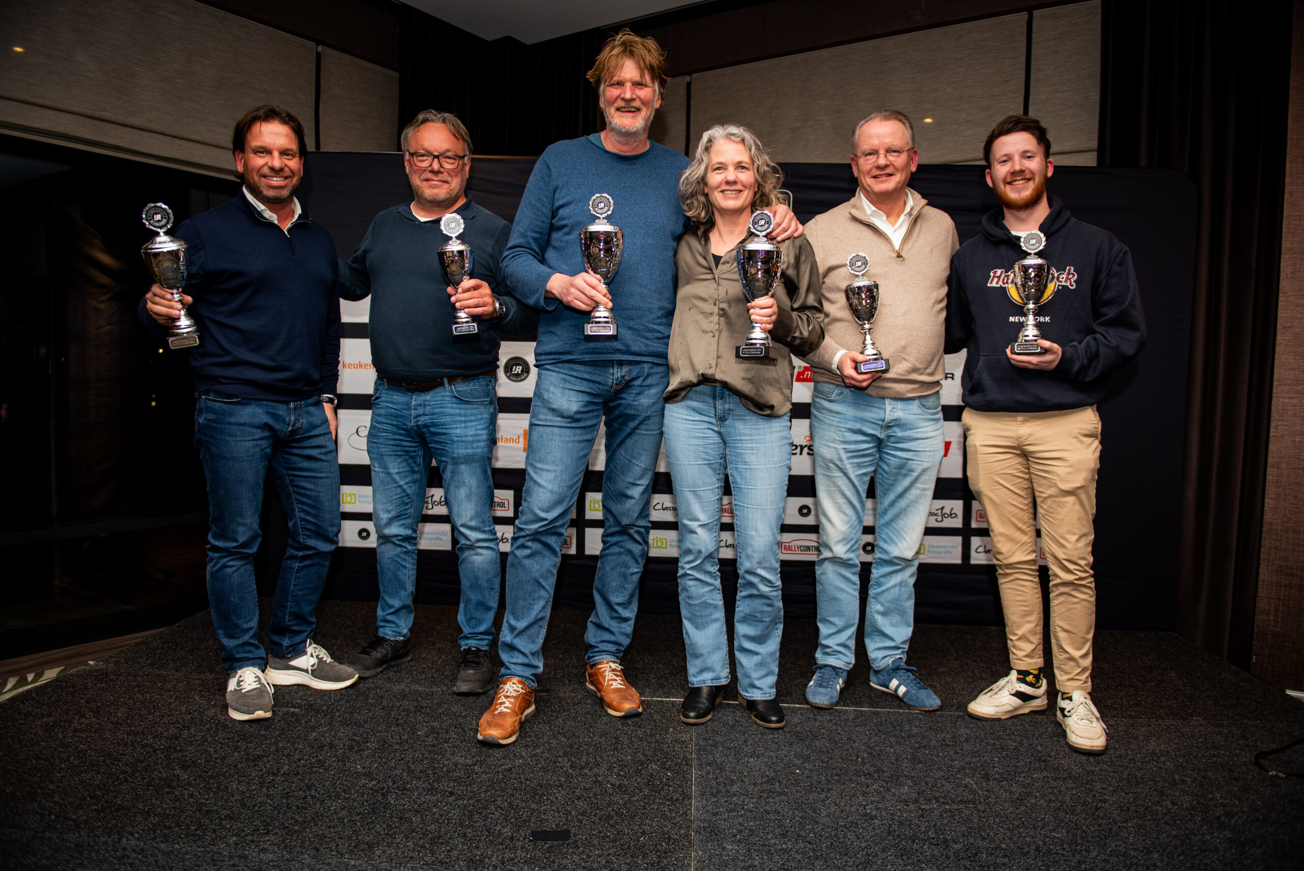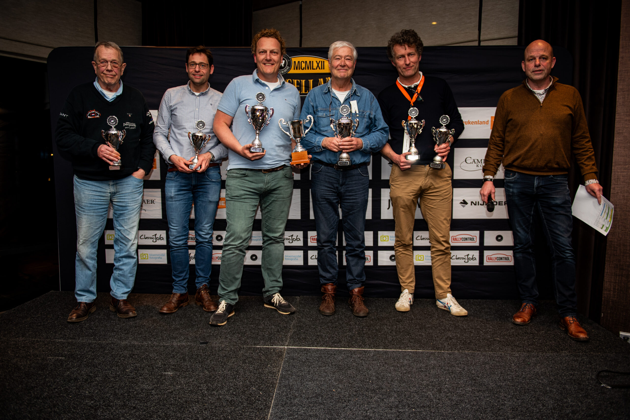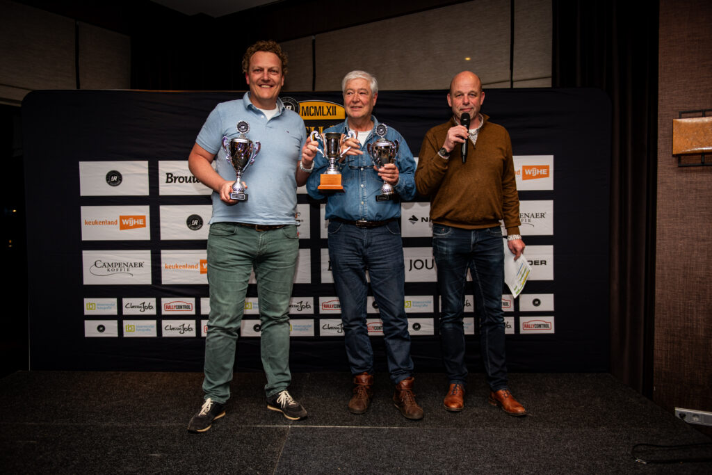 De eerste equipes meldden zich rond 17.00 uur bij de finish waar zij verwelkomd werden door Bert van den Dool. Na ruim 250 wedstrijdkilometers, voor de Clubklasse iets minder, was de voldoening bij iedereen groot, maar de spanning bij de top van het veld niet minder. Immers, de vraag is natuurlijk of je met zoveel uitdagingen minder fouten gemaakt hebt dan je directe opponenten. Het is duidelijk dat de rekenkamer bij zo’n complexe rally een grote en omvangrijke uitdaging heeft, maar rond 20.00 uur was duidelijk dat de equipe Rob Koebrugge – Paul van de Riet in een Alfa Romeo Giulia Ti de overall winnaars waren. In de Clubklasse ging de eerste prijs naar Jelte van der Meulen. – Mariska Rutgers in een NSU RO 80. De Open Klasse werd gewonnen door Mats Gombert – Joost Gombert. Alle prijswinnaars van harte gefeliciteerd!