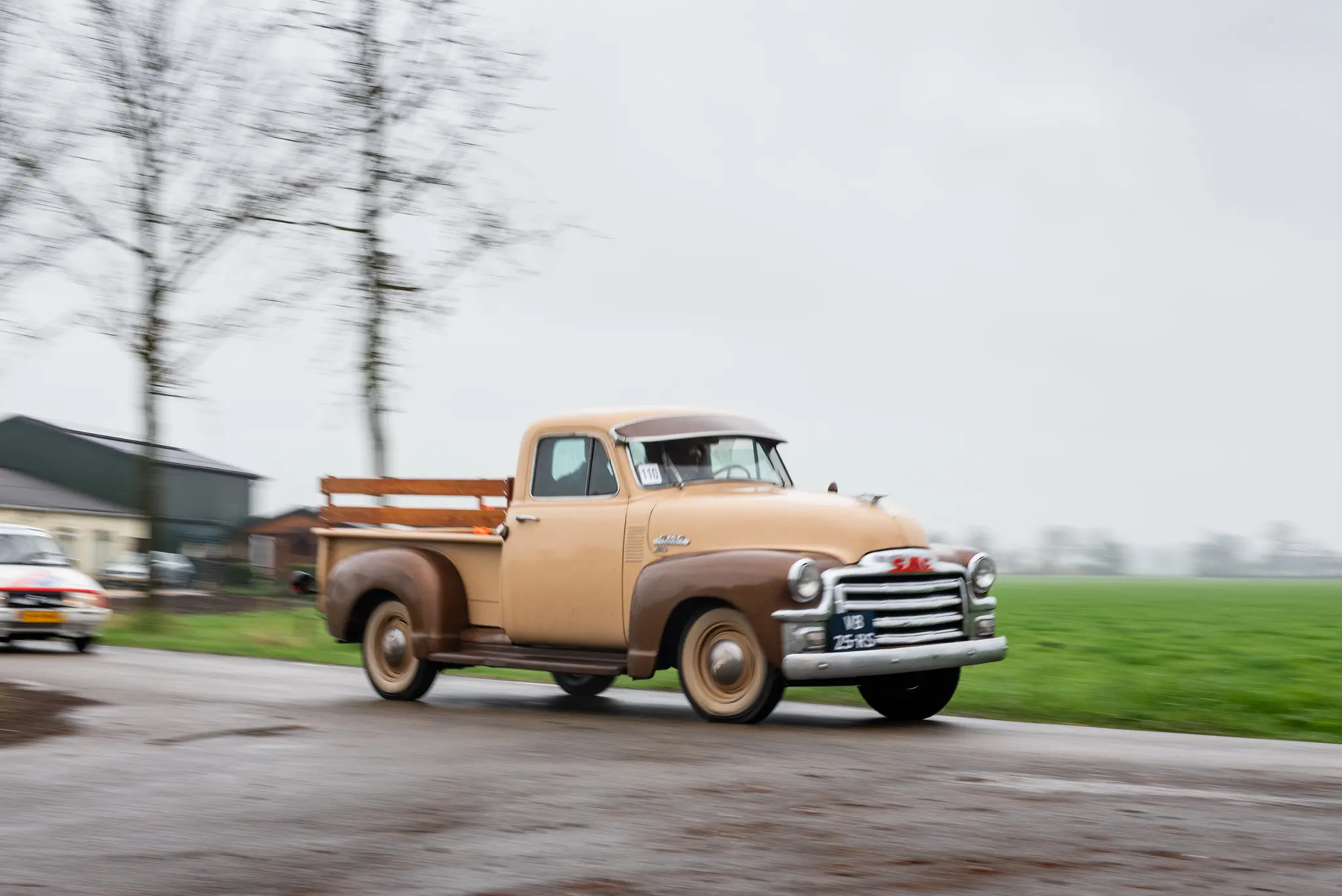 De tussenstand voor de overall overwinning gaf aan dat het close zou worden. 3 equipes met 0 fouten op de voet gevolgd door enkele equipes met 1 en 2 fouten. Daarbij waren de uitslagen van de specials en regularities nog niet verwerkt, het was dus nog lang niet gedaan! Na een goede lunch vertrokken de deelnemers richting de polder naar de test ‘Coffee on Ice’ op het terrein van Flevo on Ice. Hoewel er geen ijs meer op de asfaltbaan lag was het inmiddels stevig gaan miezerregenen. Het parcours was dus lekker glad en ook hier was weer de uitdaging het juiste traject zo snel mogelijk af te leggen. De bestuurders konden dus echt los en het gaf veel vermaak! Na afloop was er nog een goede bak koffie van Campenaer waarna de deelnemers via een traject pijlen kortste route, met enkele leuke uitdagingen voor de navigator, doorreden naar het terrein van autocrossvereniging ‘De Flintstones’ voor een proef op hun deels verharde en deels onverharde ondergrond. Het parcours was prachtig geprepareerd en de equipes pakten ook deze uitdaging weer met beide handen aan. Snelheid, behendigheid, slippen en driften, het geluid van klassieke automotoren vermengd met rondvliegend zand en graspollen, deelnemers en publiek vonden het prachtig.