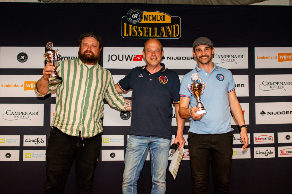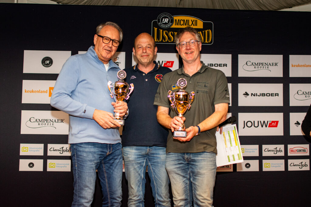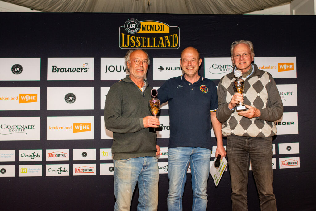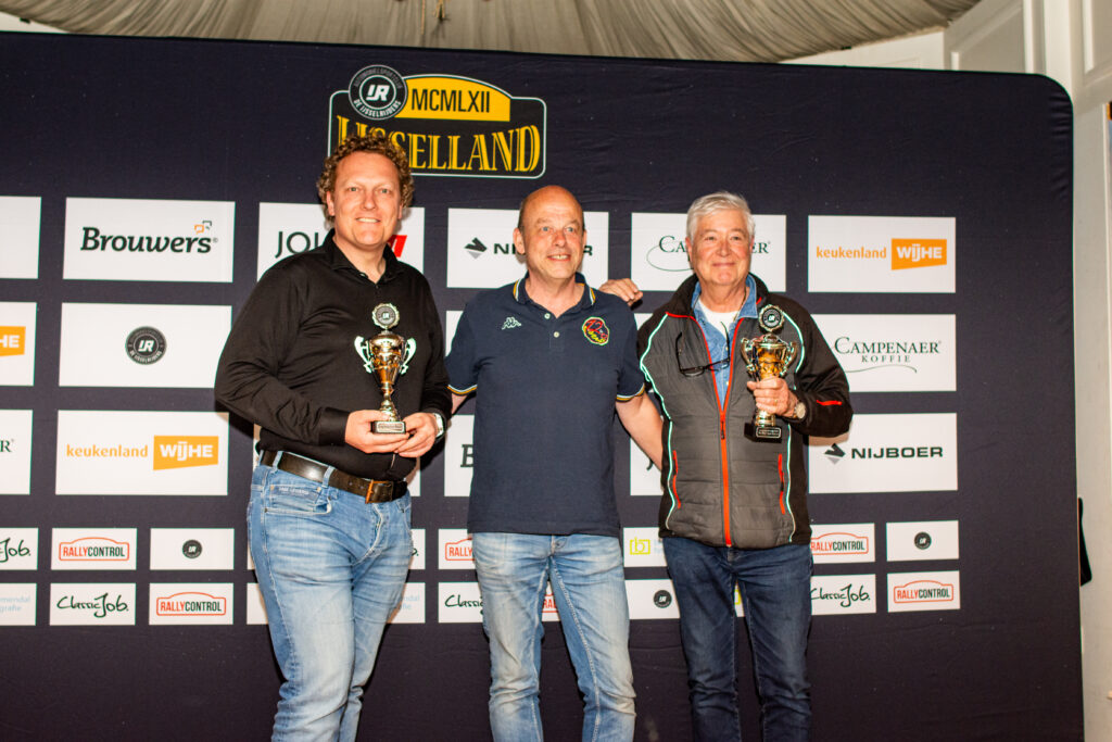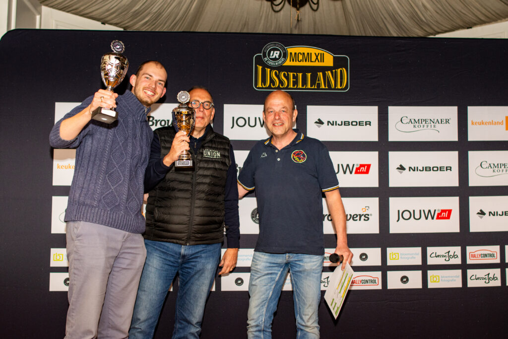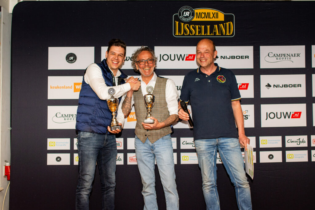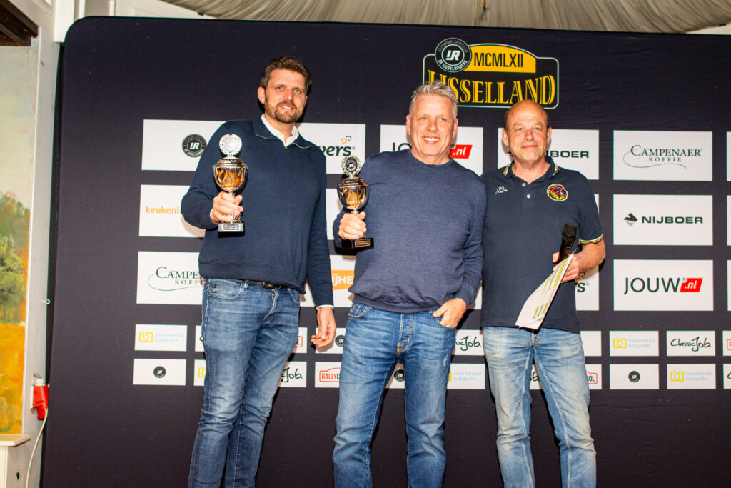 Vanaf ongeveer 16.45 uur mocht Bert van den Dool de eerste equipes weer onder de finishboog bij ’t Asje in Dalfsen binnenhalen. De zon scheen uitbundig en al snel werd het gezellig op het terras waar met de inmiddels verstrekte uitleg de dag nog eens doorgesproken werd. Rond 18.00 uur was iedereen binnen en kon er genoten worden van een uitgebreide en heerlijke BBQ. Ondertussen was de rekenkamer druk in de weer met de uitslag, bij deze rally, een nog ‘ouderwetse’ bordjesrally, toch wel serieus werk. Rond 19.00 uur kon dan echt de prijsuitreiking beginnen en werden de podiumplekken verdeeld. In bijna alle klassementen en testen was sprake van veel spanning en kleine marges tussen winst en verlies. Na de prijsuitreiking en onder het genot van een heerlijk dessertbuffet werd nog even nagenoten en nagepraat, de dag had immers veel (in)spanning, plezier en gespreksstof opgeleverd. Het was gewoon weer een onvergetelijke editie van de IJssellandrally!